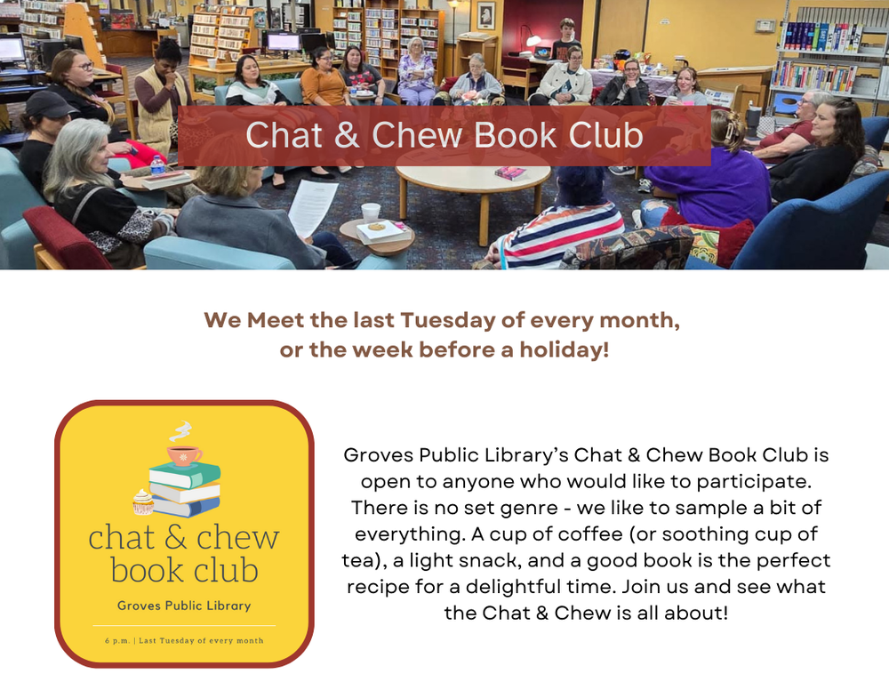 Chat & Chew Book Club www www Here's our title list for 2025. wwww Chat & Chew would love to have you! wwww wwww Join our Facebook group and stay updated on all the reads. www www www